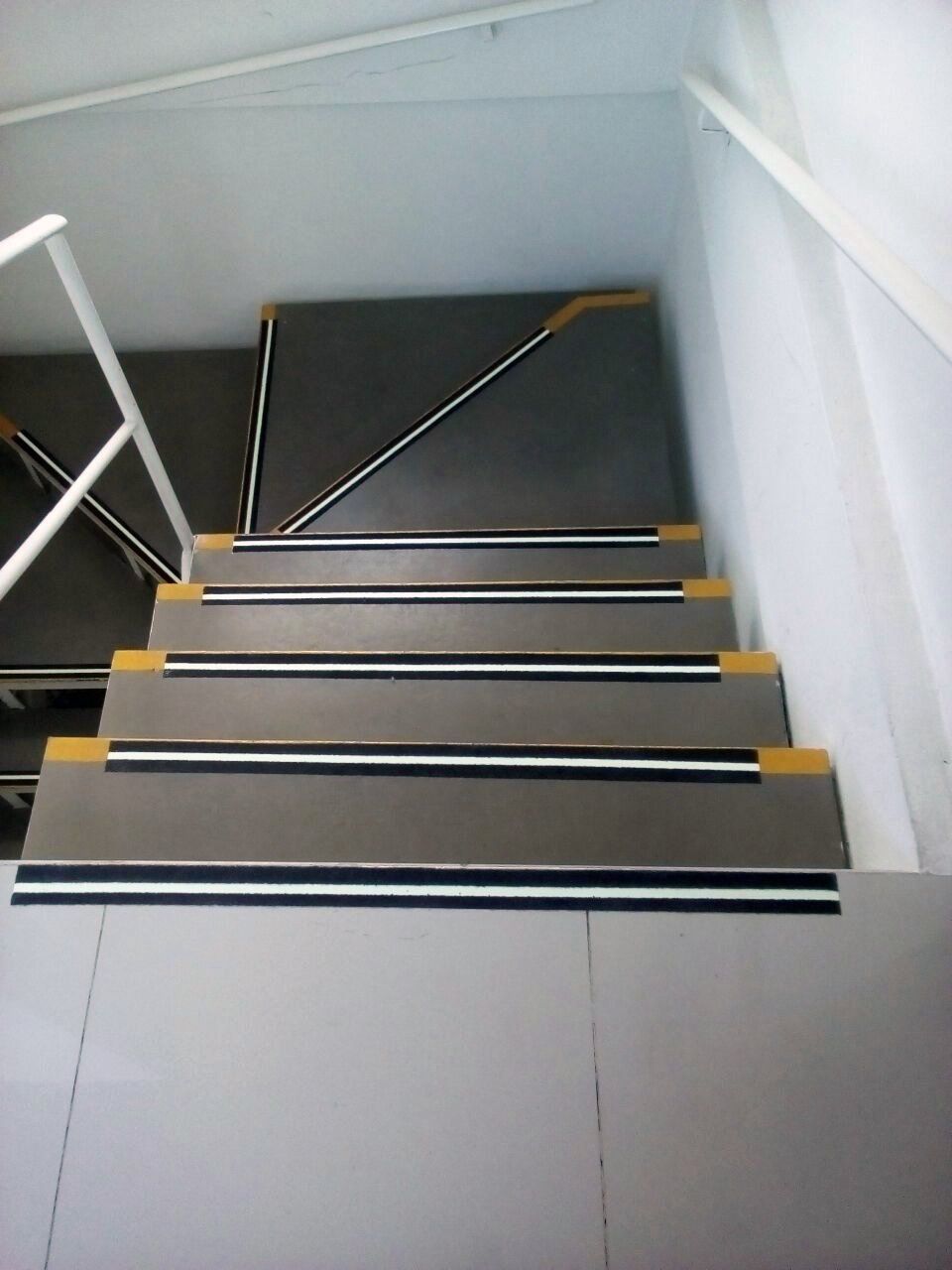 Bandas antideslizantes normales y con fotoluminiscente, fundidas en el lugar a instalar.